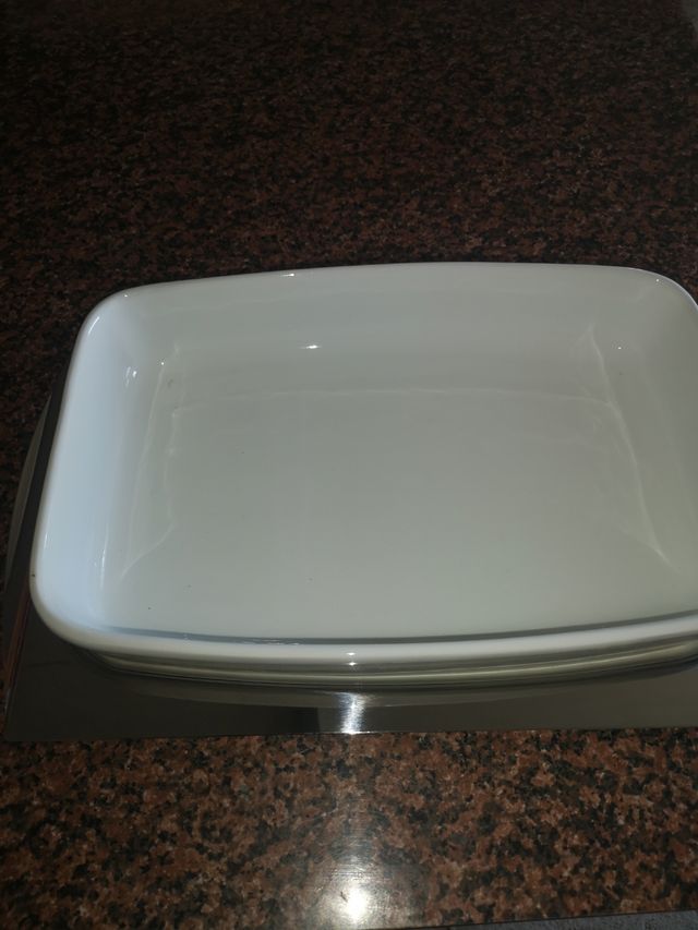 Lasagnera in ceramica bianca con vassoio in acciaio inossidabile misura cm 42x27 vedi foto allegati