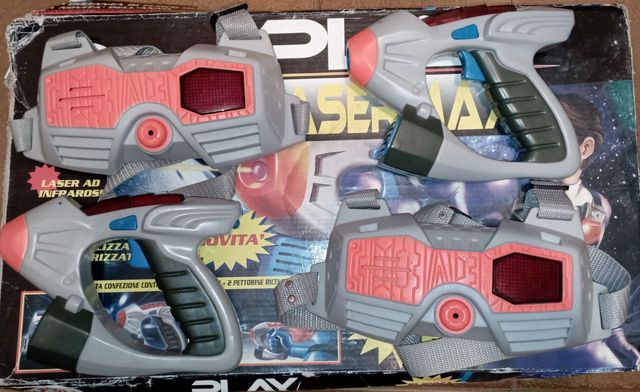 - 2 pistole laser - 2 pettorine Completamente funzionante, utilizzato poco e necessita di batterie AA