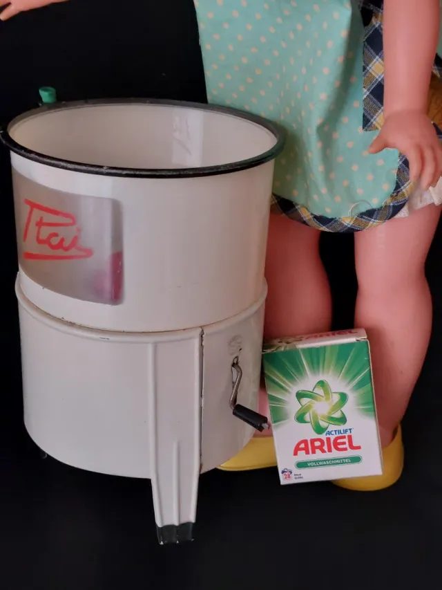 Dettagli del prodottoLavatrice giocattolo vintage degli anni '60, Paya, in latta, inutilizzata, funziona con una manovella, negozio di giocattoli, progettata per la bambola Nancy. Un classico per collezionisti. Foto con NANCY come riferimento per dimensioni e misure. Bambola non in vendita. Includo un regalo per acquisto, la confezione di detersivi in miniatura Ariel. Spedizione tramite wallapop.