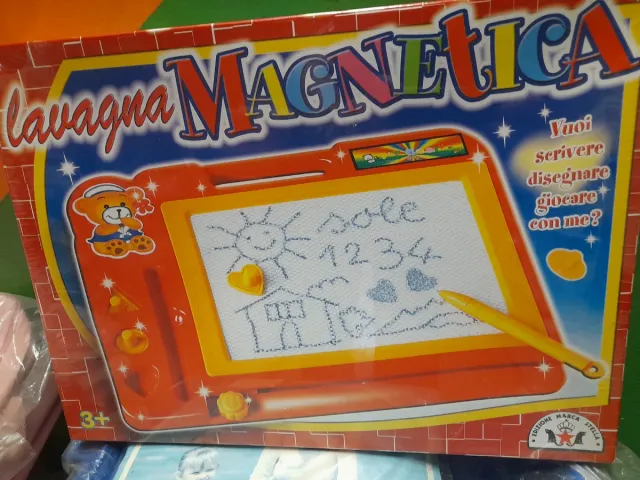 Lavagna magnetica per disegnare e scrivere, perfetta per i più piccoli. - Include pennarello magnetico. - Disegni e lettere in blu. - Età consigliata: 3+ anni.