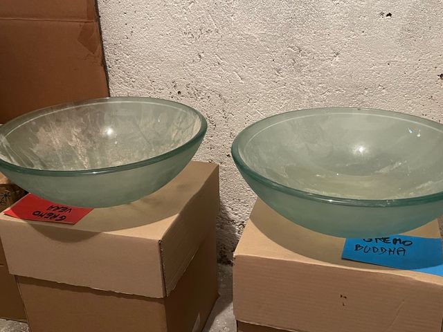 Coppia di lavandini in cristallo acidato completo di sifoni