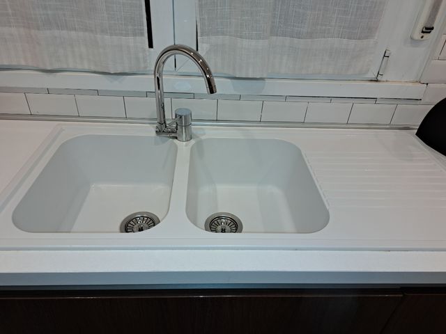 Dettagli del prodottoVendesi lavello cucina in granito bianco con gocciolatoio, praticamente nuovo, usato 4 mesi causa trasferimento, acquistato a gennaio 2022 come da scontrino in allegato. Misure 116×50 cm. Compreso di rubinetto pieghevole. Tutto 130 euro
