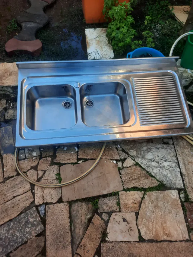 Dettagli del prodottoLavello da cucina in acciaio inossidabile con due vasche e un pratico scivolo.