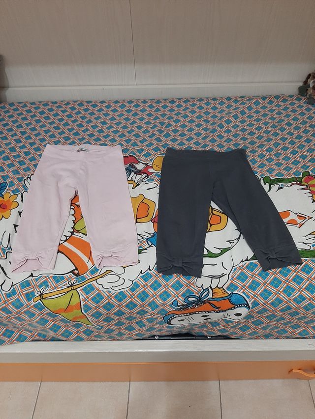 Set di due paia di leggings per bambina. - Un paio di leggings rosa. - Un paio di leggings grigi. - Lunghezza 3/4. - Dettaglio fiocco sul fondo.