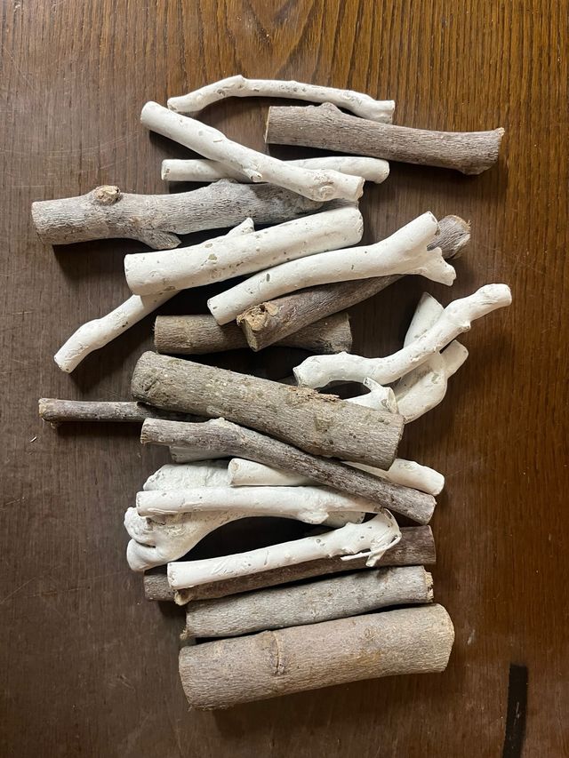 Dettagli del prodottoLotti di legnetti decorativi, alcuni bianchi e altri marroni, perfetti per creare composizioni artistiche o per decorare.