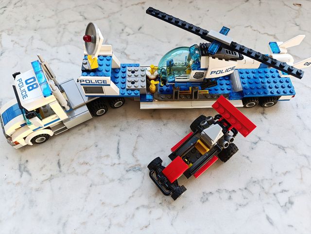 Set Lego City 60049, Camion della Polizia con rimorchio elicottero e auto sportiva. Mancano minifigure e istruzioni Guardare le ultime foto per pezzi sostituiti