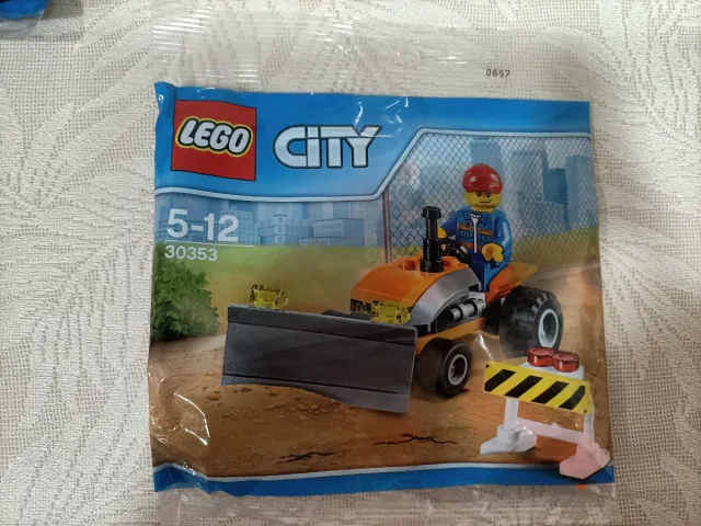 Set di costruzione Lego City 30353. Include figura di operaio edile, veicolo tipo bulldozer e accessori da cantiere.
