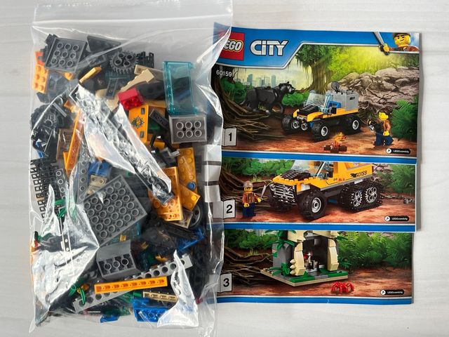 Dettagli del prodottoSet di costruzione Lego City 60159. Include pezzi per costruire veicoli e scenari. Ispirato al tema della ricerca del tesoro e dell'esplorazione. Set completo, se richiesto, posso mostrare l'evidenza con tutte le parti. La descrizione è stata tradotta automaticamente.