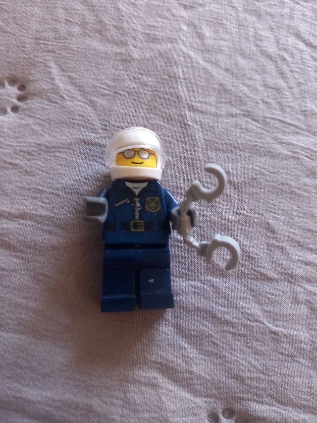 Minifigure Lego di un poliziotto con manette. - Figura in plastica. - Dettagli della divisa da poliziotto.