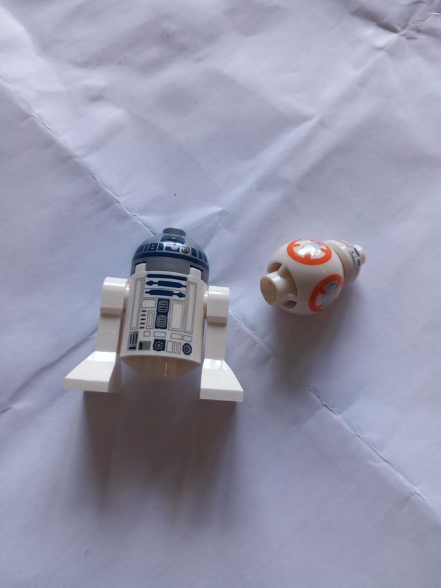 Vendo due personaggi Lego di Star Wars: R2-D2 e BB-8. Sono in buone condizioni. - R2-D2 è bianco e blu. - BB-8 è arancione e bianco.