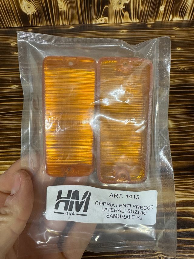 Dettagli del prodottoCoppia di lenti per frecce laterali, adatte a Suzuki Samurai e SJ. Sono nuove, di colore arancione e in confezione originale.