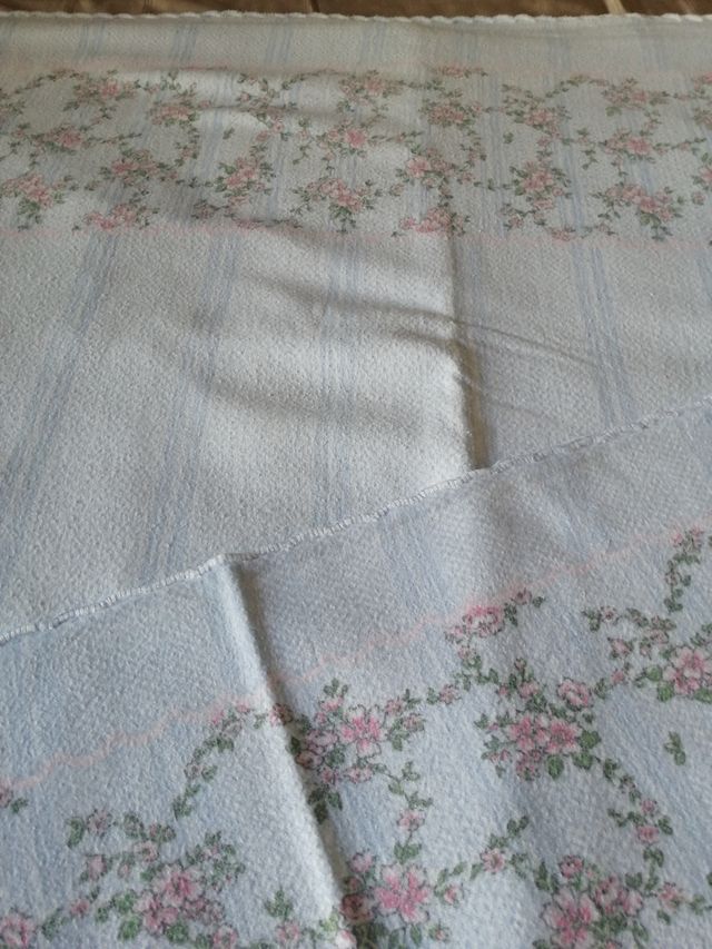 Dettagli del prodottoLenzuola in flanella di cotone per letto matrimoniale. In tonalità tenui di azzurro, con decorazioni floreali rosa. Lenzuolo sotto piano, senza angoli.