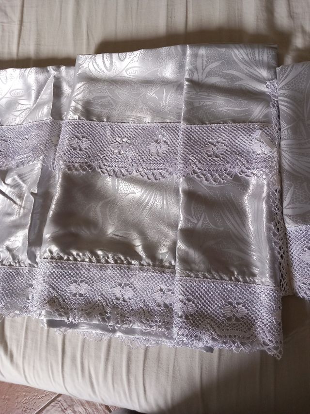 Lenzuola in raso argento e pizzo