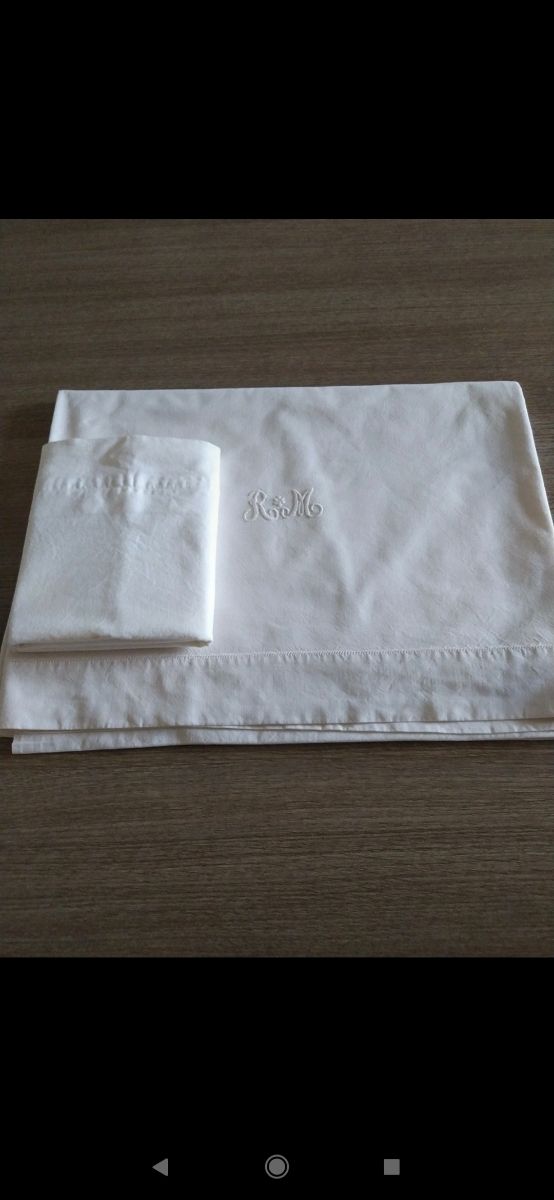 Dettagli del prodottolenzuolo vintage,singolo,con iniziali R M ricamate a mano, punto a giorno,in fresco cotone di una volta . Federa semplice con asole sempre fatte a mano.Misure cm 136x260,47x76