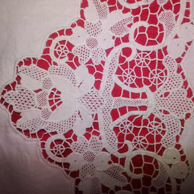lenzuolo con pizzo di burano , orlo a giorno e asole nelle federe fatto a mano