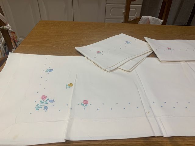 Lenzuolo matrimoniale in cotone pesante con ricamo a mano.Comprende il lenzuolo sopra e 2 federe
