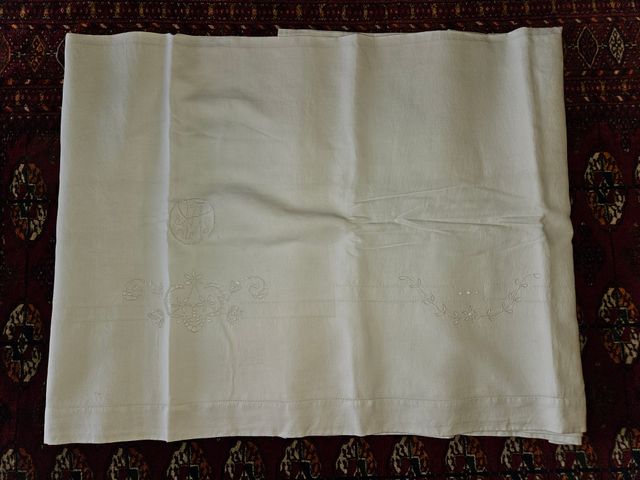 Lenzuolo matrimoniale antico ricamato a mano in ottime condizioni