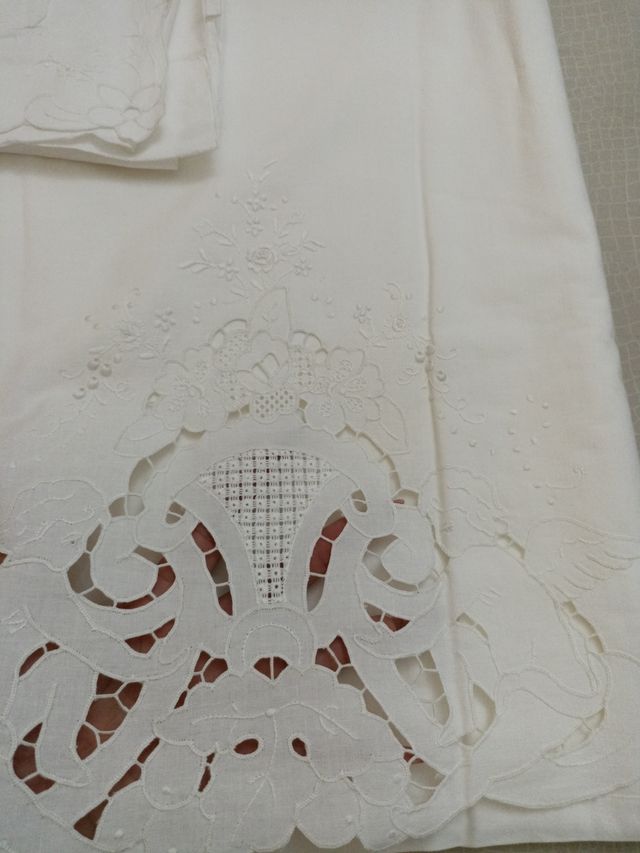 lenzuolo matrimoniale vintage ricamato a mano