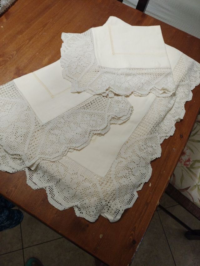 Puro lino, pizzo interamente realizzato a mano da artigiani fiorentini,colore ecrú,mai utilizzata, vendo per inutilizzo.