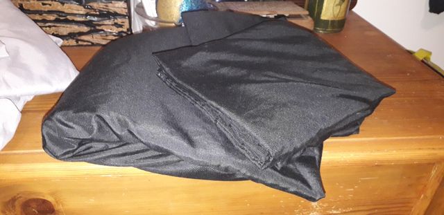 in morbido raso, usati pochissimo, sono perfetti, pari al nuovo. misura super king color nero