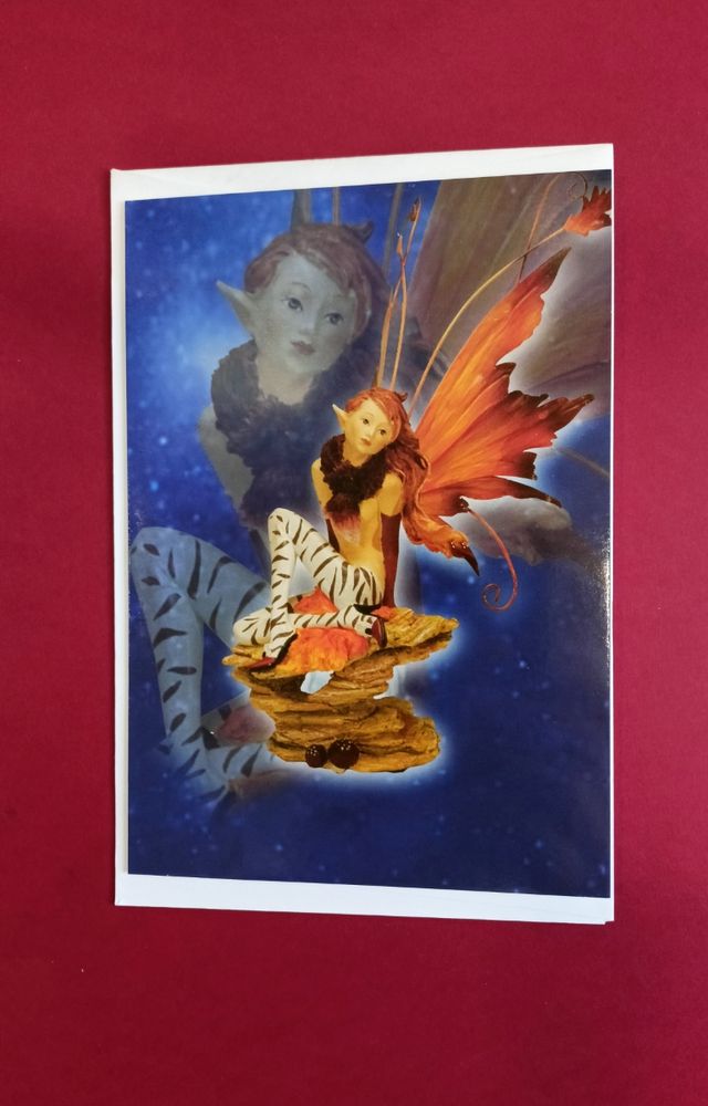 Biglietto di auguri con busta bianca. Tema fate Les Alpes. Fate dei sogni, fate del fuoco, fate dei segreti. Nuovo, mai utilizzato e ancora imbustato