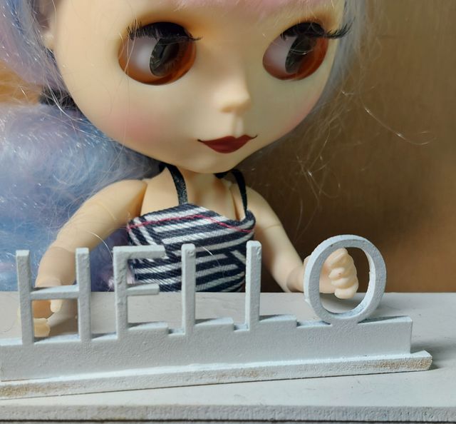 Dettagli del prodottoQuesto cartello in legno con la parola HELLO è progettato in scala 1:6, perfetto per completare le tue bambole Blythe. La descrizione è stata tradotta automaticamente.