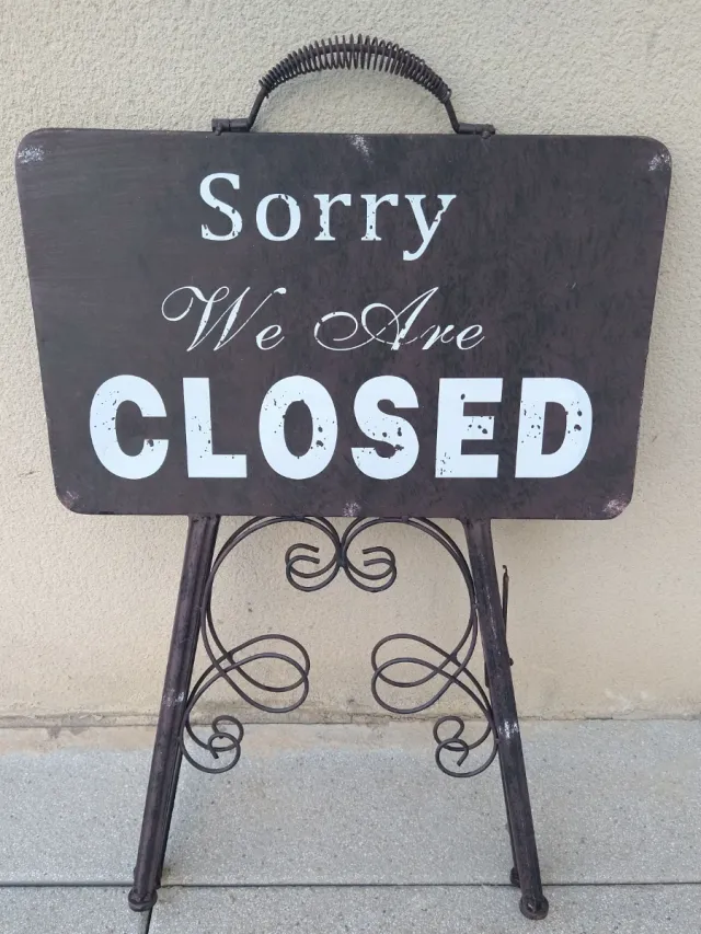 Dettagli del prodottoQuesto cartello vintage ha un design accattivante, perfetto per attività commerciali o per decorare il giardino. Realizzato in metallo con finitura marrone. Il testo Sorry We Are CLOSED/Come in We Are OPEN è bianco. Manico decorativo nella parte superiore. Supporto in ferro battuto con decorazioni. La descrizione è stata tradotta automaticamente.