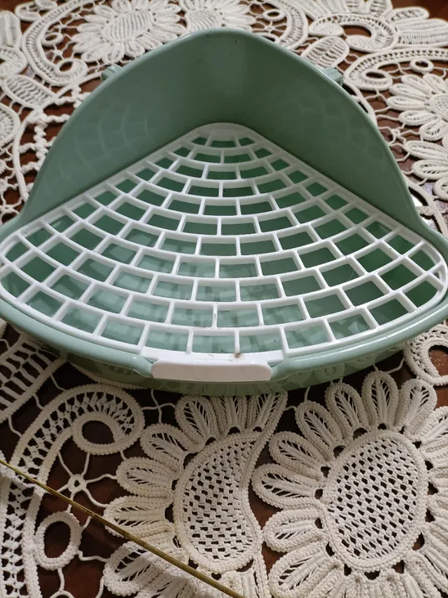Dettagli del prodottoLettiera angolare in plastica, ideale per conigli e piccoli animali. Facile da pulire e posizionare nell'angolo della gabbia.