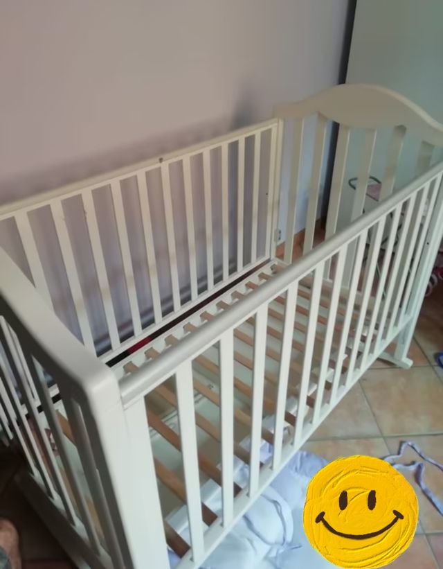 Tenuti molto bene,marca Baby Italia,matariali e vernice atossica, già dotato di protezione per i denti sulle spondine e possibilità di doppia altezza per regolarlo durante la crescita del bambino.
