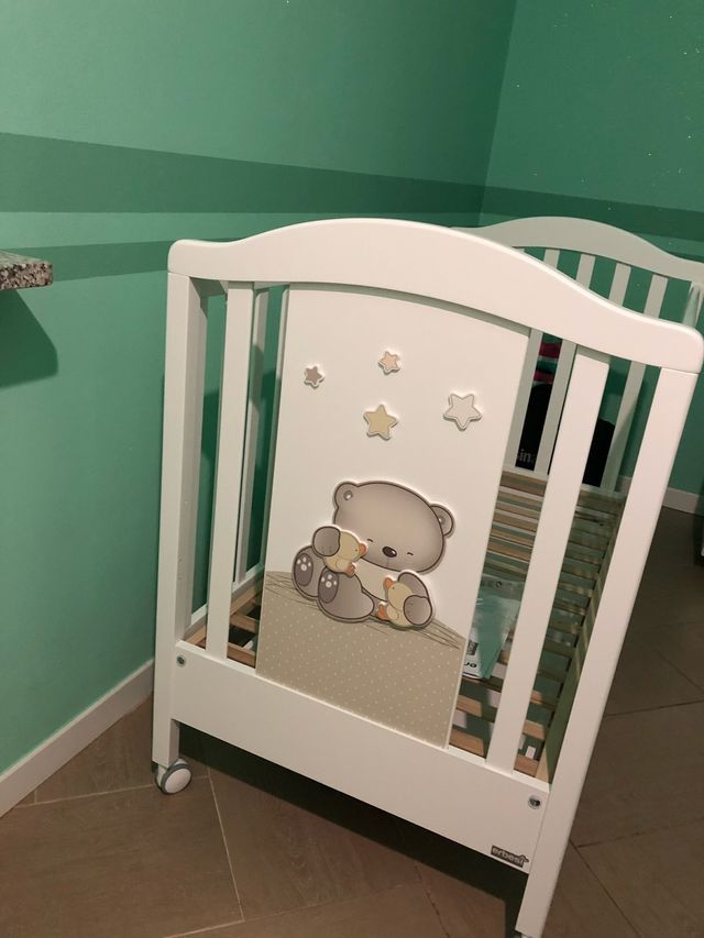 Dettagli del prodottoLettino per bambini del marchio Erbesi, in legno bianco. È in ottime condizioni ed è perfetto per arredare la cameretta del tuo bambino.
