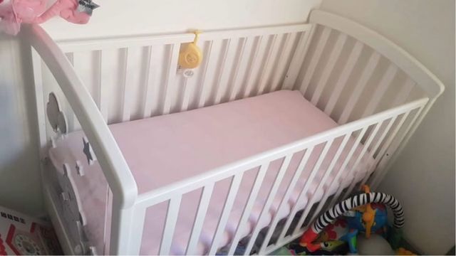 Lettino Erbesi modello Toby, ideale per la cameretta. - Struttura in legno bianco. - Design moderno con decorazioni a forma di nuvole e stelle. - Rete a doghe.