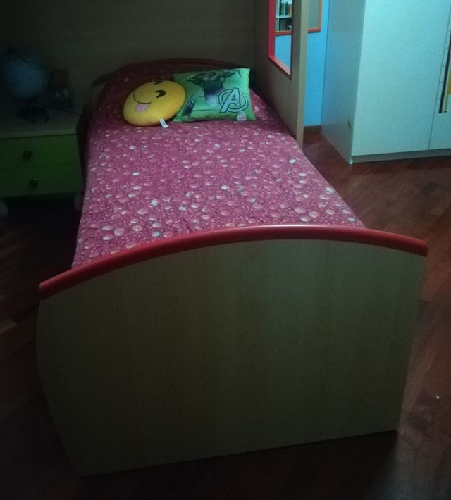 Dettagli del prodottoLetto singolo con rotelle che facilitano lo spostamento. Venduto senza materasso. Misure del prodotto