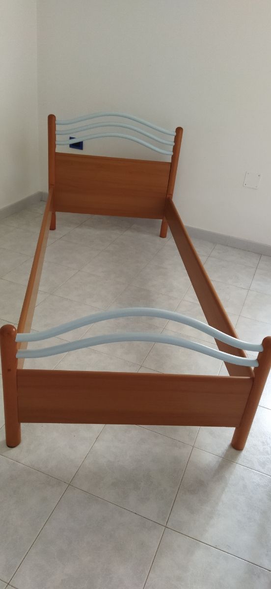 Noce e azzurro. Rete con doghe di legno. Completo di materasso. Ritiro a carico dell'acquirente.