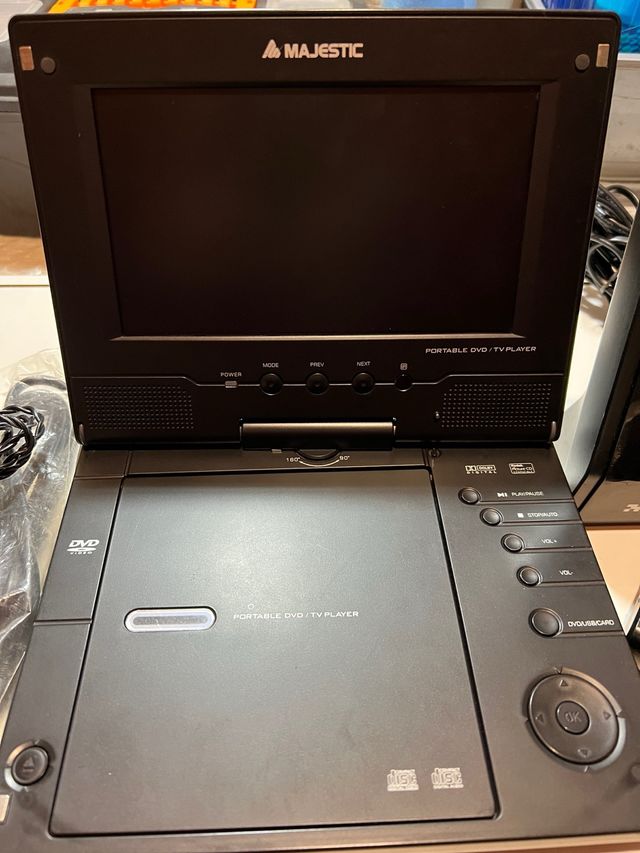 Dettagli del prodottoLettore DVD portatile Majestic completo di due casse Trust.