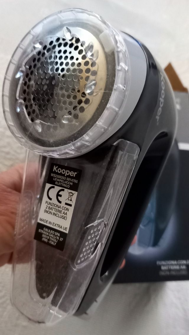 Disponibile levapelucchi elettrico Koooper, come nuovo. - Funziona con 2 batterie AA (non incluse). - Made in EU. - Design compatto e maneggevole.