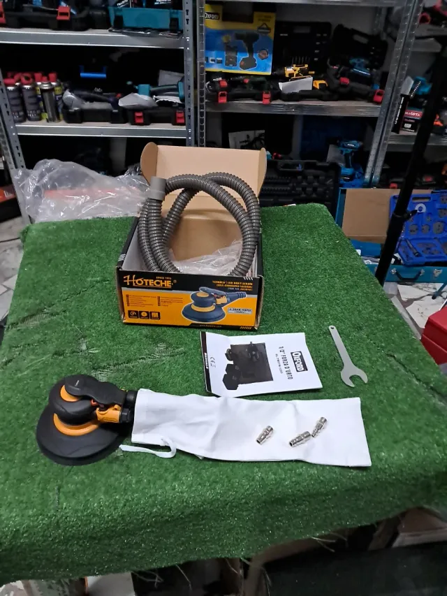 Dettagli del prodottoLevigatrice orbitale pneumatica HOTECHE, ideale per lavori di levigatura.