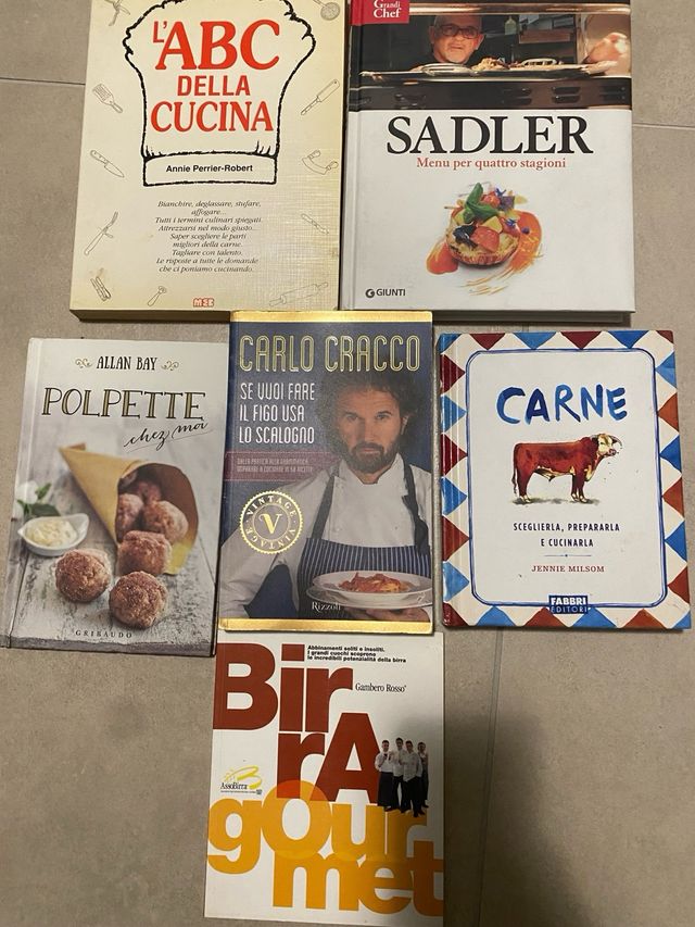 6 libri di cucina di grandi chef/giornalisti: cracco, allan bay, sadler, jennie milson, gmbero rosso e annie perrier-robert 2€ a libro, 10€ tutti