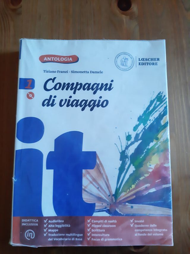 Loescher editore. 2 volumi: antologia ed epica. Per la prima media. Entrambi rivestiti con copertina di plastica trasparente. Completi di allegati e CD.