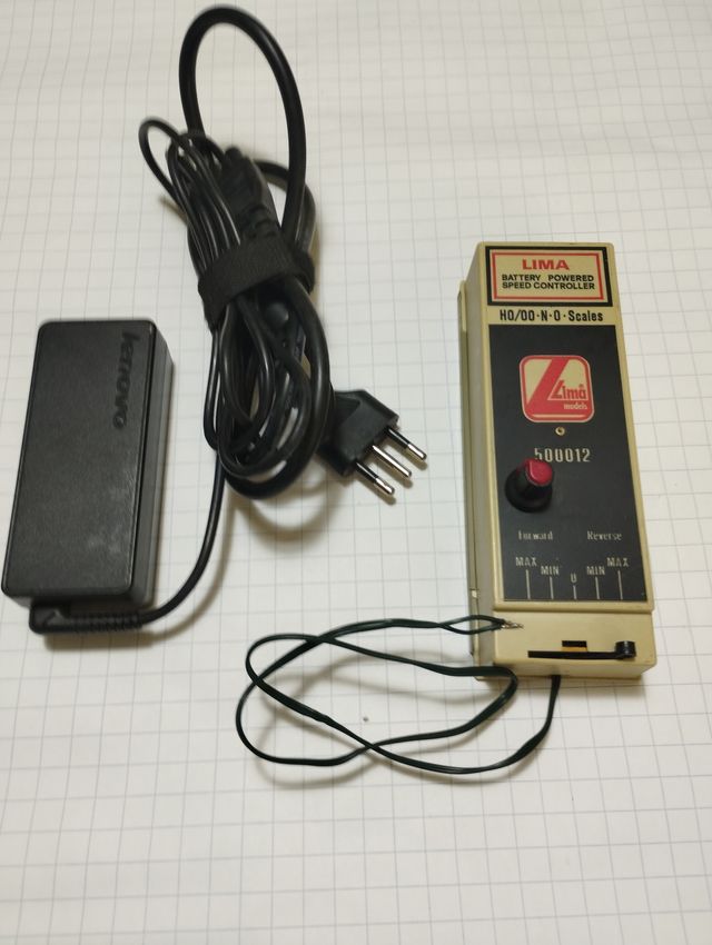 Alimentatore Lima allestito artigianalmente per funzionare con la spina invece delle pile. Max 3A (in grado quindi di sostenere molte motrici).