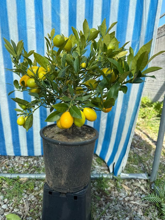 Dettagli del prodottoBellissima pianta di Limequat , è un ibrido tra lime e kumquat. Il frutto è un mix che unisce l'acidità del lime alla dolcezza della buccia del kumquat, per tanto va mangiato con tutta la buccia. La pianta al momento presenta molti frutti. Quello che vedete in foto è quello che spediamo a casa vostra. vaso 20 Misure del prodotto