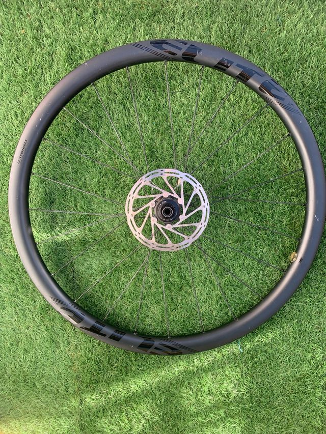 Dettagli del prodottoRuota posteriore in carbonio EliteWheels da 38 mm. Progettato per prestazioni ottimali. Attualmente utilizzato su una ghiaia.
