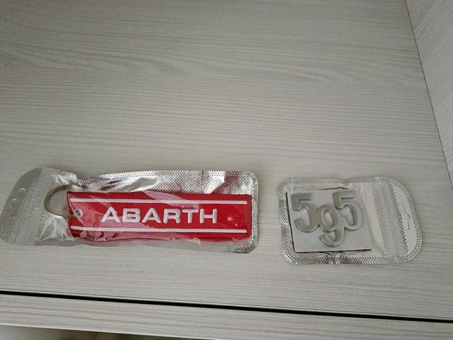 logo tessuto badge Abarth + logo badge metallico 595 completo di biadesivo per installazione, tutto nuovo