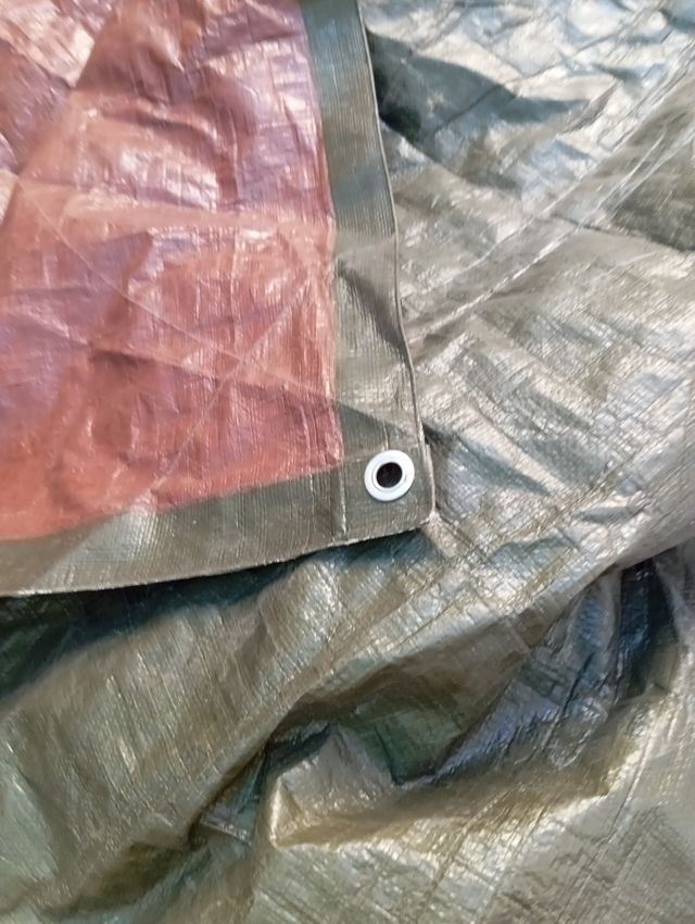 Dettagli del prodottoToldo grande para terrazas ,jardín , tejados o sombra coche Verde oscuro ,por dentro marrón ,con anillas de sujeción cada 1m