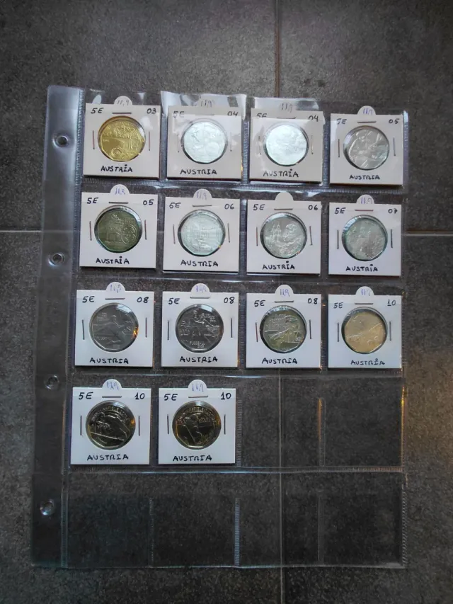 Dettagli del prodottoSet di 14 monete da 5 euro dell'Austria, realizzate in argento. Prezzo unitario 15€. Portane via tutte per 180€. La descrizione è stata tradotta automaticamente.