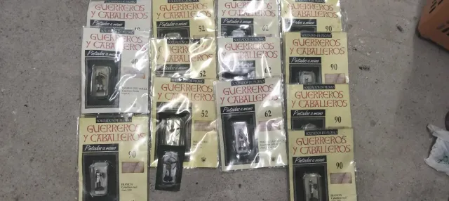 Dettagli del prodottoSet di 14 figure di soldati di piombo, ciascuno dipinto a mano. Figure di guerrieri e cavalieri. Pittura dettagliata a mano. Include figure con i numeri 10, 40, 52, 61, 62 e 90. La descrizione è stata tradotta automaticamente.