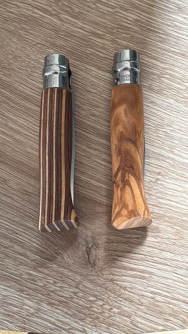 Dettagli del prodottoConfezione da due coltelli Opinel, uno con manico in legno di ulivo e l'altro con manico in legno laminato. - Coltello Opinel in legno di ulivo. - Coltello Opinel in legno laminato. La descrizione è stata tradotta automaticamente.