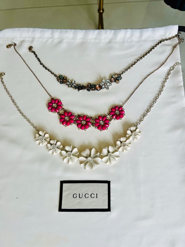 Lote 3 collane floreali con zirconi e ceramica