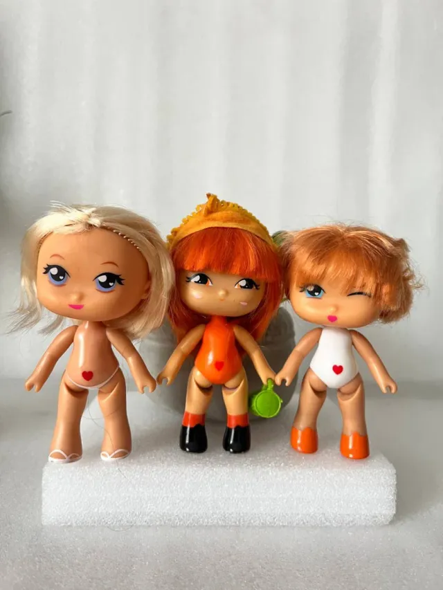 Dettagli del prodottoSet di tre rare bambole Barriguitas del marchio Famosa. Le 3 a 7,50€ - Bambola bionda con costume da bagno bianco e dettagli rosa. - Bambola rossa con costume da bagno arancione, cappello e borsa. - Bambola rossa con costume da bagno bianco e cuore rosso. La descrizione è stata tradotta automaticamente.