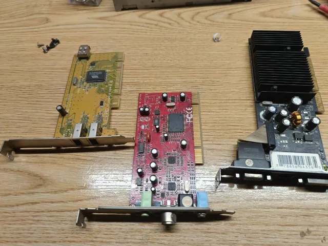 Dettagli del prodottoIn vendita lotto di tre schede per PC. - Scheda con connessione USB. - Scheda di colore rosso per cattura video. - Scheda grafica gf 6200 256mb DDR2 con dissipatore nero. La descrizione è stata tradotta automaticamente.