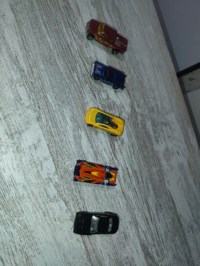 Dettagli del prodottoSet di cinque macchinine Hot Wheels.